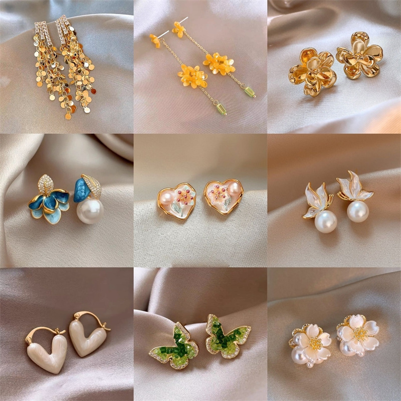 エナメルの釉薬の非対称イヤリングの高級感にドリルの葉の真珠のピアスの女性2025の爆発的な中国式宮廷風