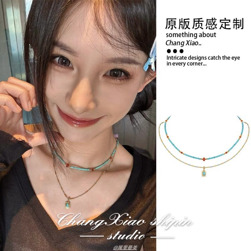 フランスの手作りビーズネックレス、レトロなライトラグジュアリー、ハイエンドの気質、鎖骨チェーン、ニッチで多用途なファッショナブルなネックジュエリー