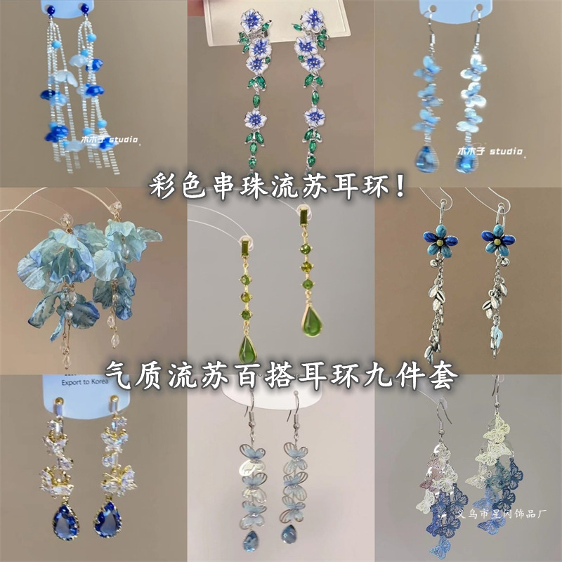 青と白の中空蝶タッセルイヤリング韓国の絶妙なデザインの芸術学生の美しいイヤーフックイヤリング女性用