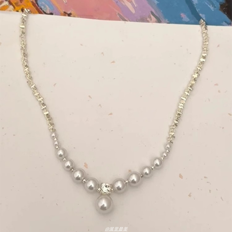 「ローマンストーリー」ブロークンシルバーパールネックレスレトロな気質ライトラグジュアリーハイエンド鎖骨チェーン女性用