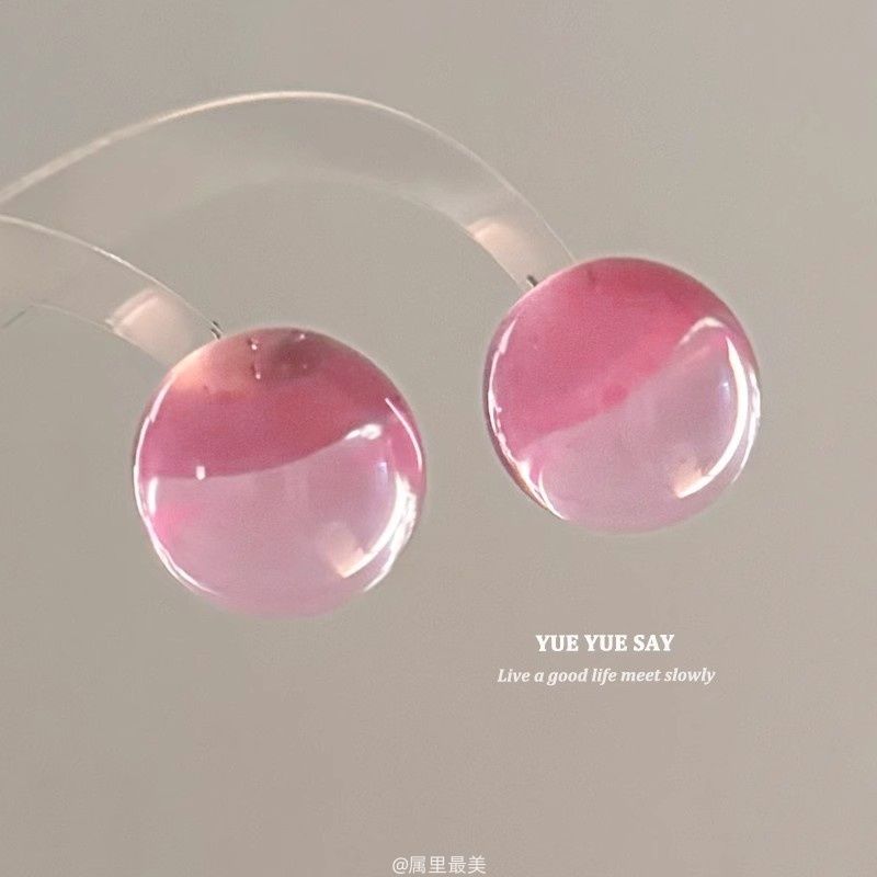 氷透薔薇粉高級感アクリルカラー円形イヤリング軽贅沢小衆デザイン気質シンプルピアスins
