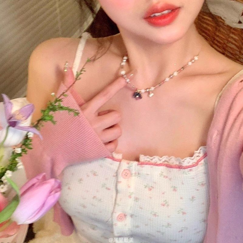 春からのお便り ~ 天然石カラービーズ花ペンダントネックレス女性ドーパミンリゾート风ネックチェーン锁