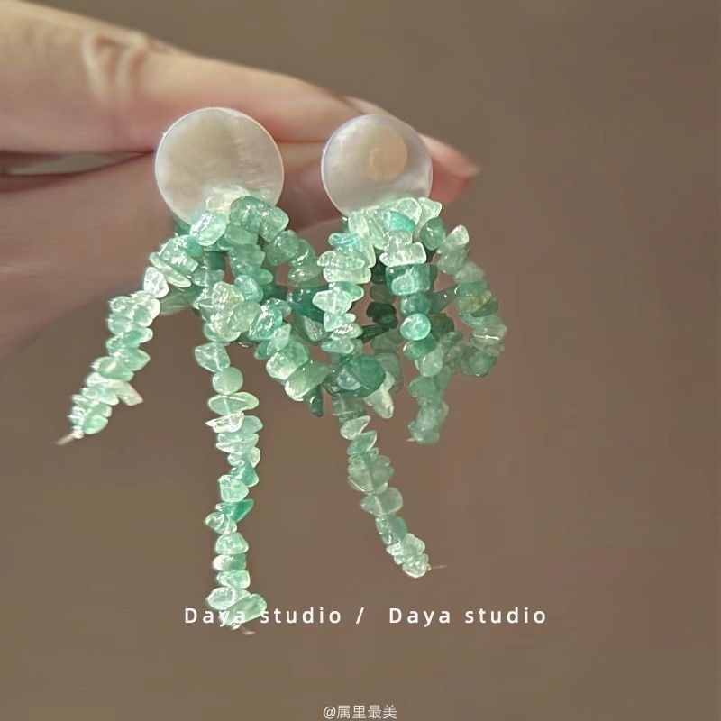 夏の海超仙フランス貝殻グリーン蝶結びイヤリング高級感小衆デザイン気質リゾート風