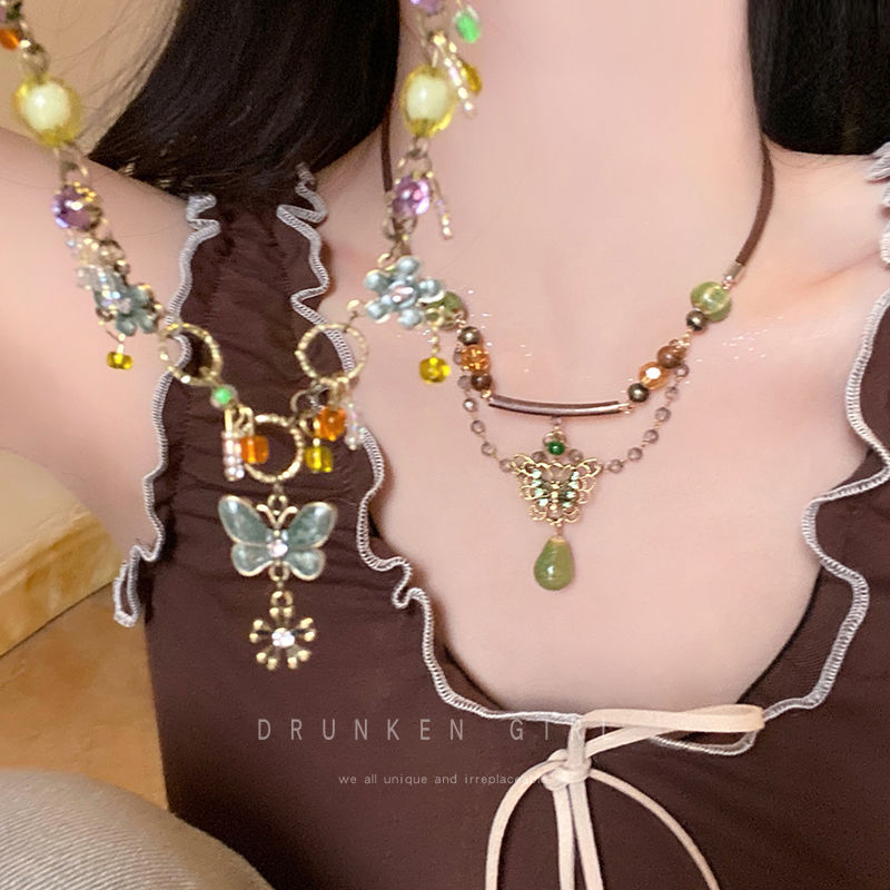 蝶恋花 ~ ドーパミンカラー蝶花ネックレス女性ボヘミアン風鎖骨鎖レトロ気質アクセサリー