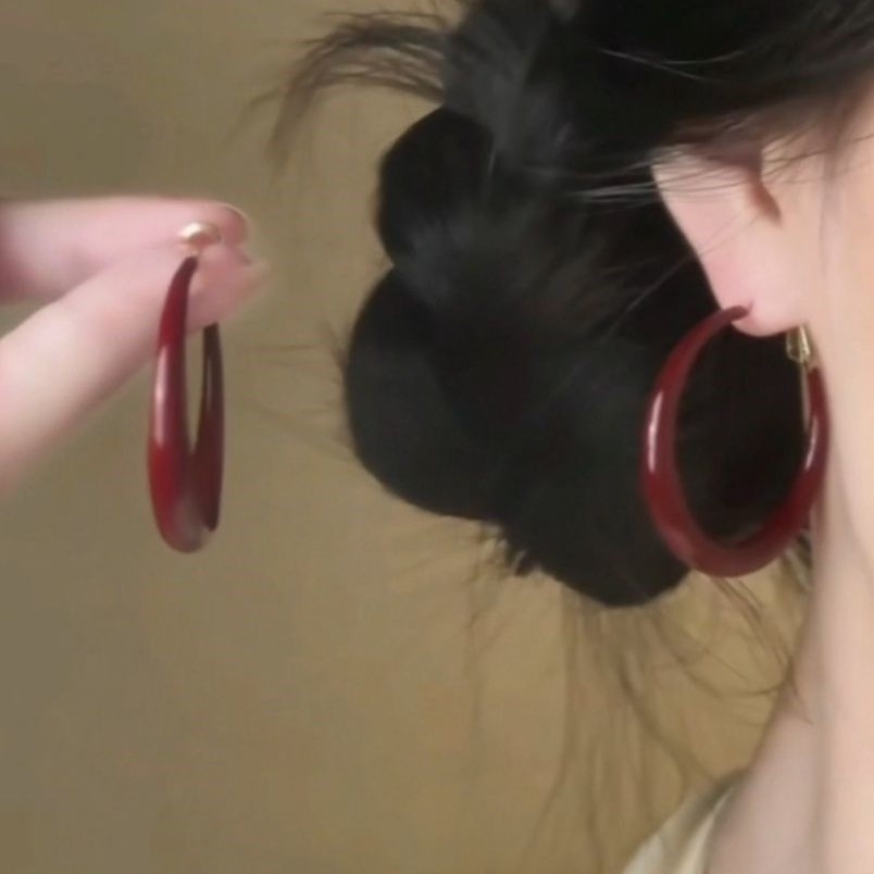 ワインレッドの釉薬円イヤリング蚊取り盤耳クリップ無耳洞軽贅沢風気質高級感ピアス耳輪