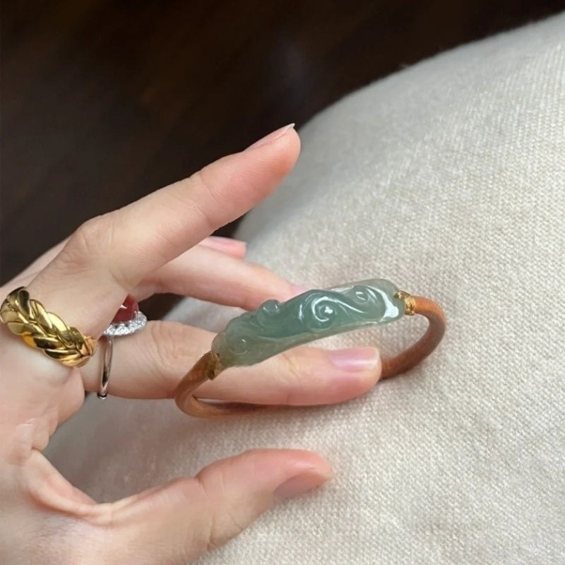 民族風復古祥雲紋皮縄手環は玉石小衆国風禅意ブレスレット古風高級感手飾りを模している