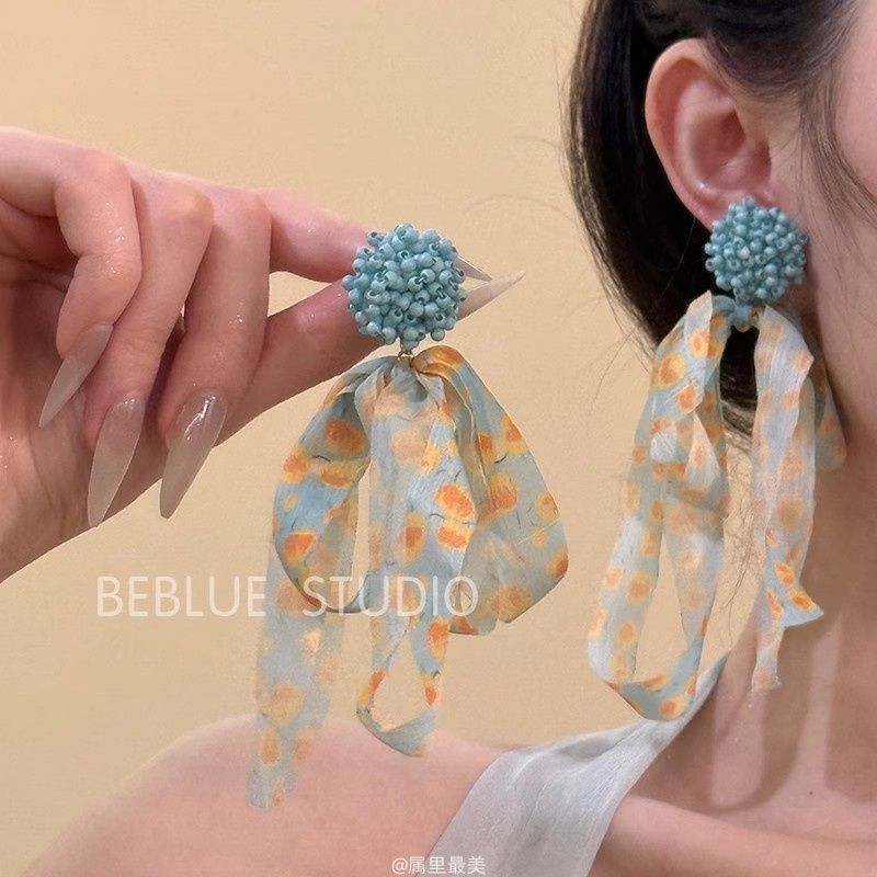 波波里晩風 ~ カラードーパミン布芸ビーズイヤリング女性ピアス海辺リゾート風独特イヤリングアクセサリー