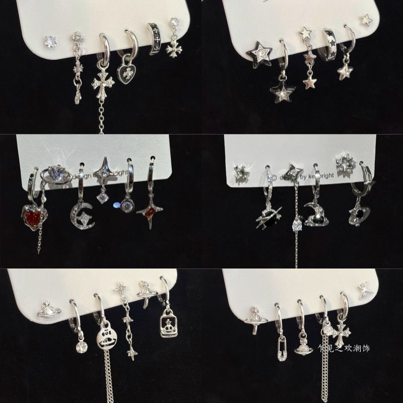 超クールな女の子! ラブジルコン6点イヤリングセット、甘くてクールなイヤリング、ニッチデザインイヤリングセット、イヤリング