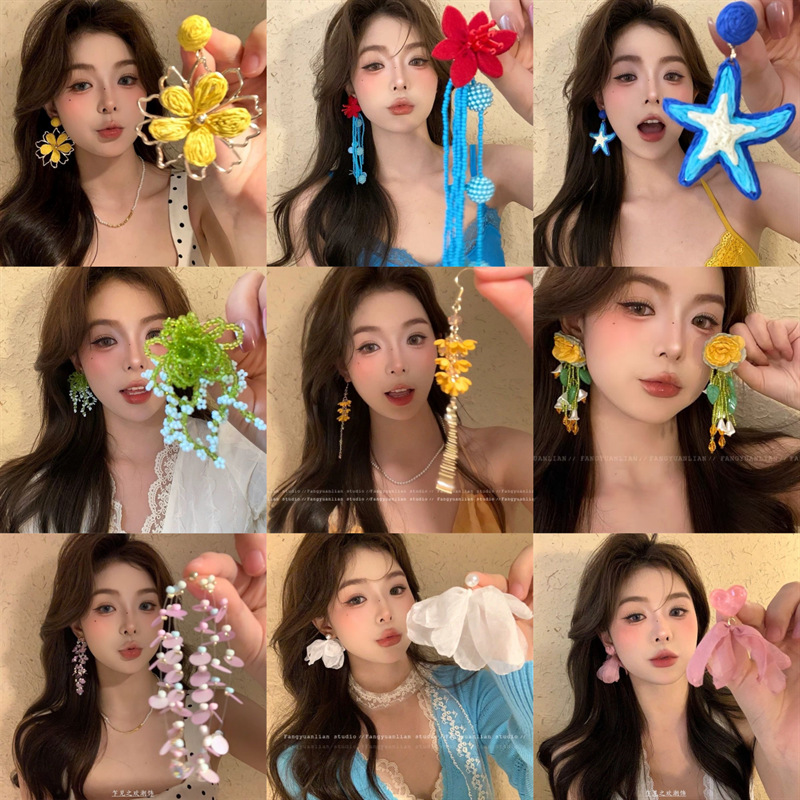 風が島のリゾート風を吹いて太陽の花のイヤリングの女性の高級感の耳飾りを編みます。