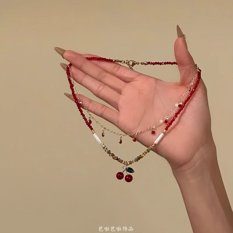 [サクラビーズスイート]サマースイートチェリーペンダントネックレスレディースニッチデザイン鎖骨チェーンチョーカーネックレス