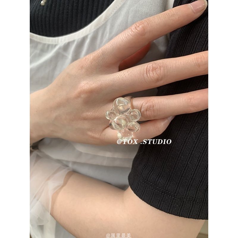 25SS韓国ブロガーと同じかわいいアクリルビーズ立体指輪透明小衆食指戒