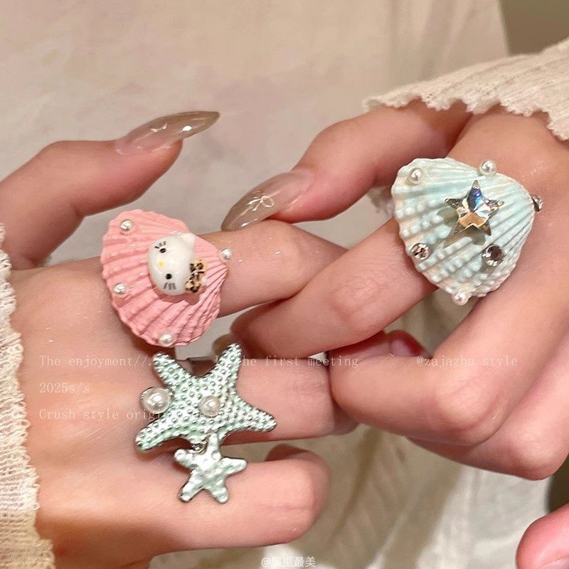子供の趣味がかわいい ~ ドーパミン海星貝殻猫指輪女性2025新型海辺観光人差し指指輪リング