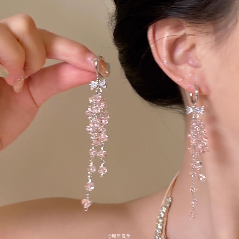 「韓国の女性の雰囲気」甘く優しく、絶妙な個性のリボンタッセルの軽い高級イヤリング、ピアスのない女性向け