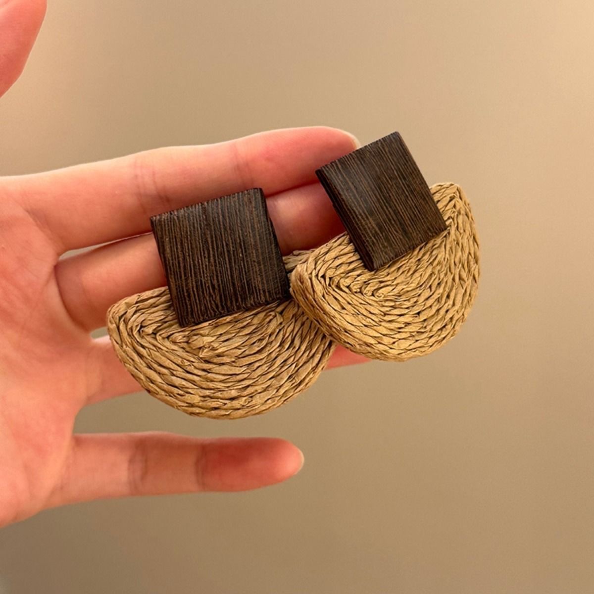 リゾート島 ~ レトロ誇張手作りピアス女性幾何学草編みイヤリング小衆海辺リゾート耳