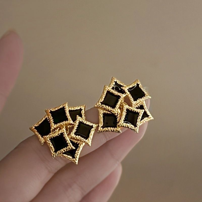 夜の昼 ~ フランスのレトロな金属の釉薬の立体芸術の四角形のイヤリングは軽くて豪華で高級感があります。