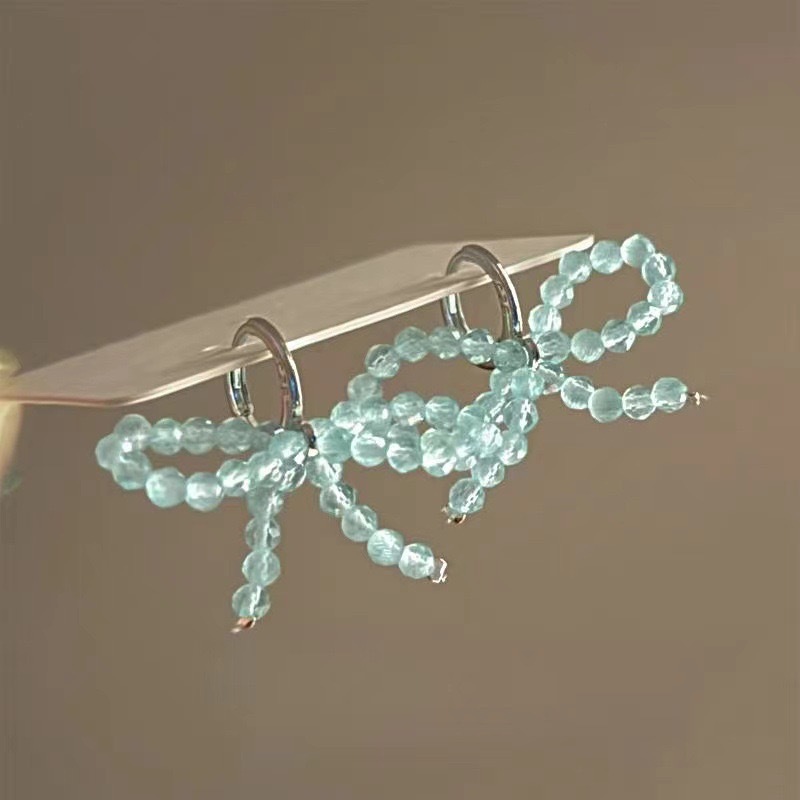 ミント砕氷青夏超仙フランス蝶ネクタイビーズイヤリング軽贅沢高級感小衆気質ピアス