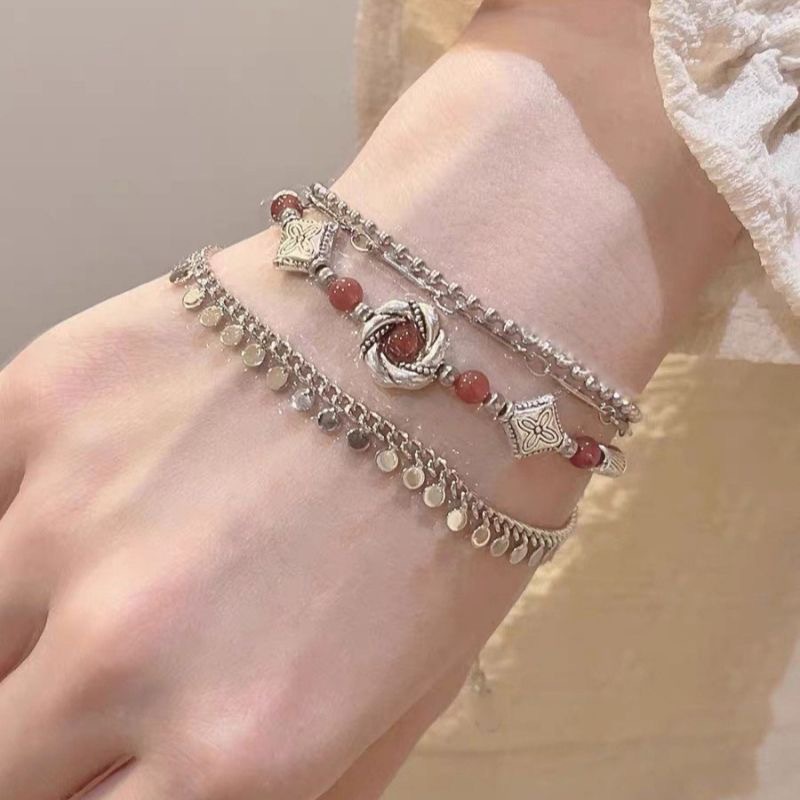 異域の苗疆の少女のブレスレットの民族風の復古はチベットの銀のブレスレットの大衆の設計の高級感をまねて手の串をかぶせます。