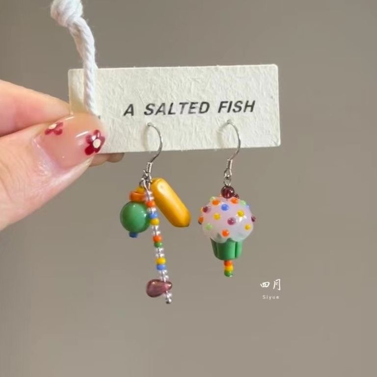 【童趣味ケーキ】オリジナルデザインカラーかわいい風瑠璃ビーズイヤリング気質シンプルイヤリング