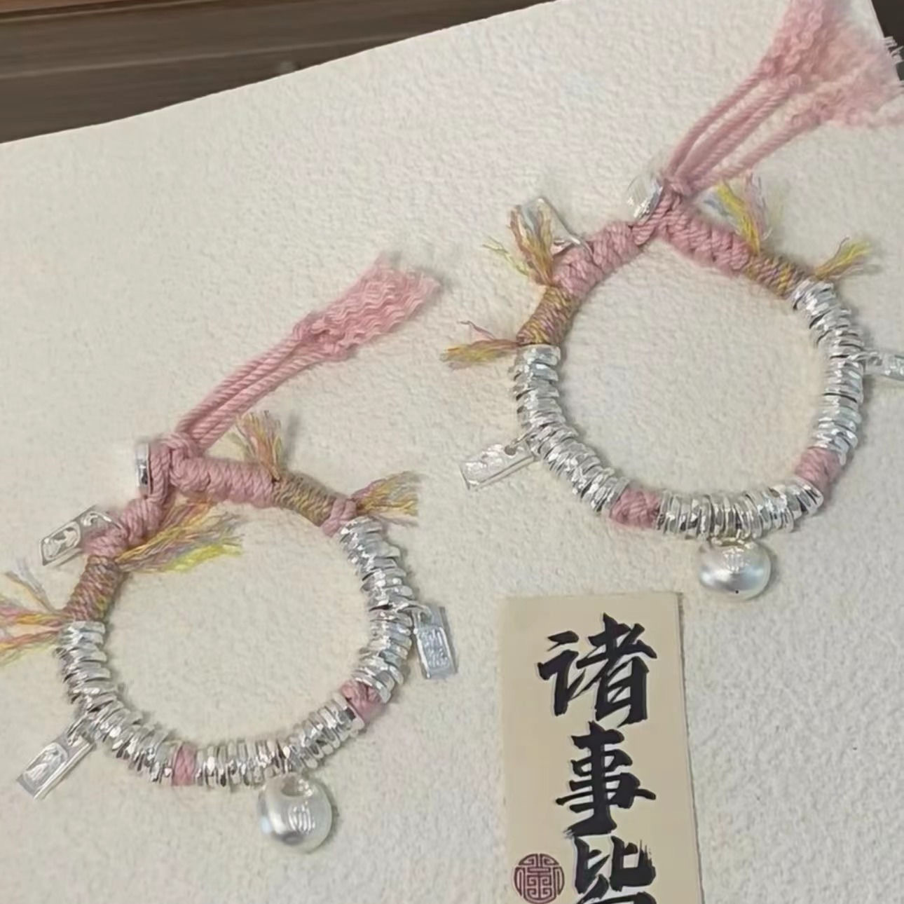 古法盤はカラーロープのチベット式のブレスレットを巻いています。