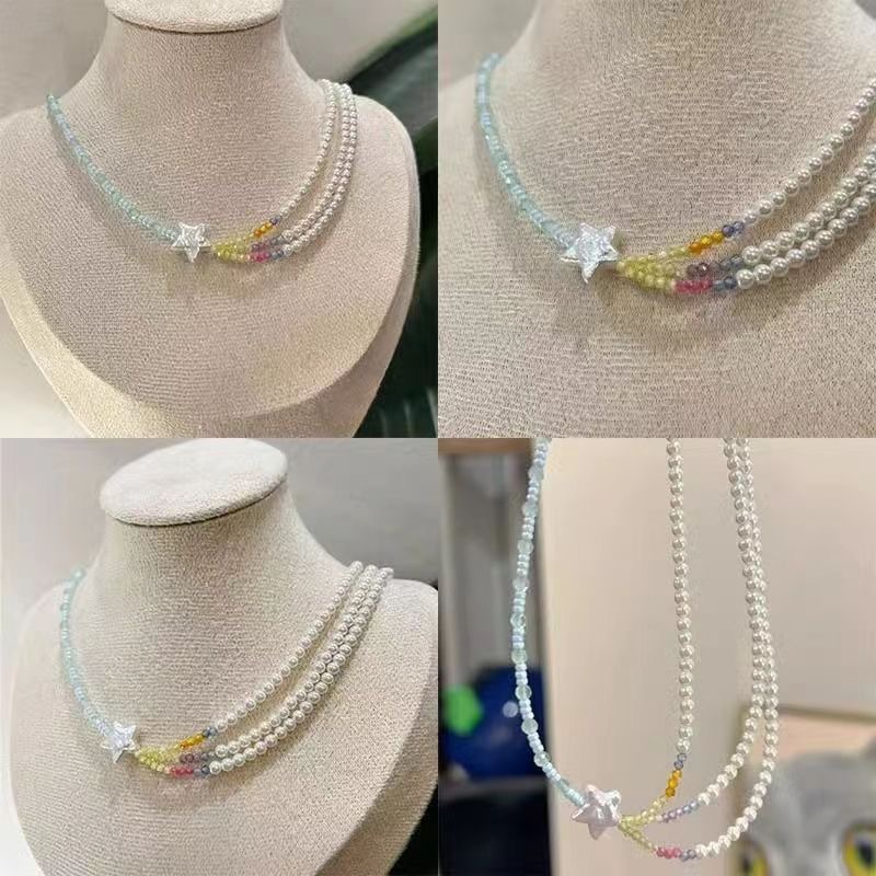 「流星雨」カラー真珠ビーズネックレス2024新型爆金小衆軽豪華鎖骨鎖女高級感