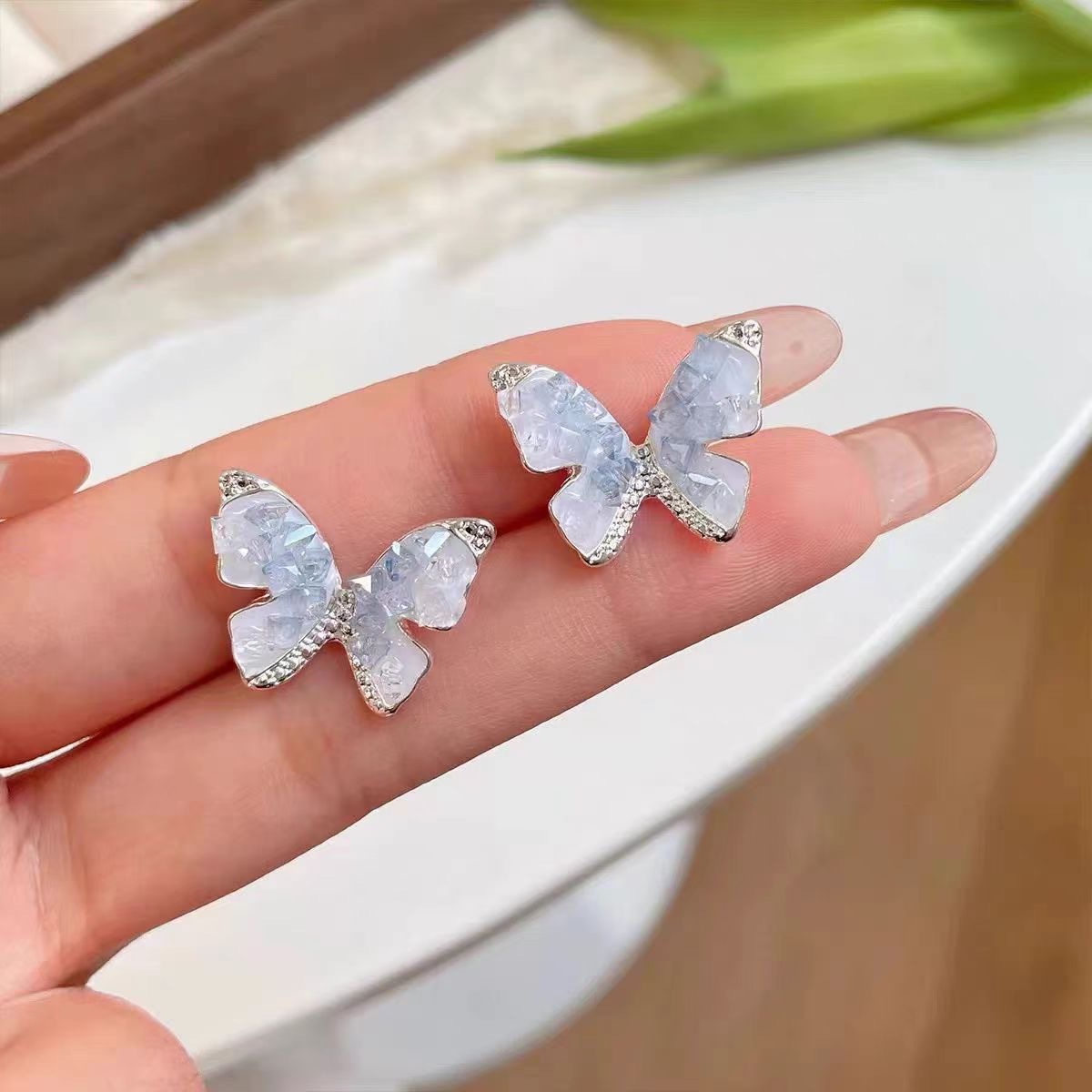 ジルコン蝶ピアス女子の洗練された高級感のある豪華なイヤリング2024年新春夏甘美耳飾り