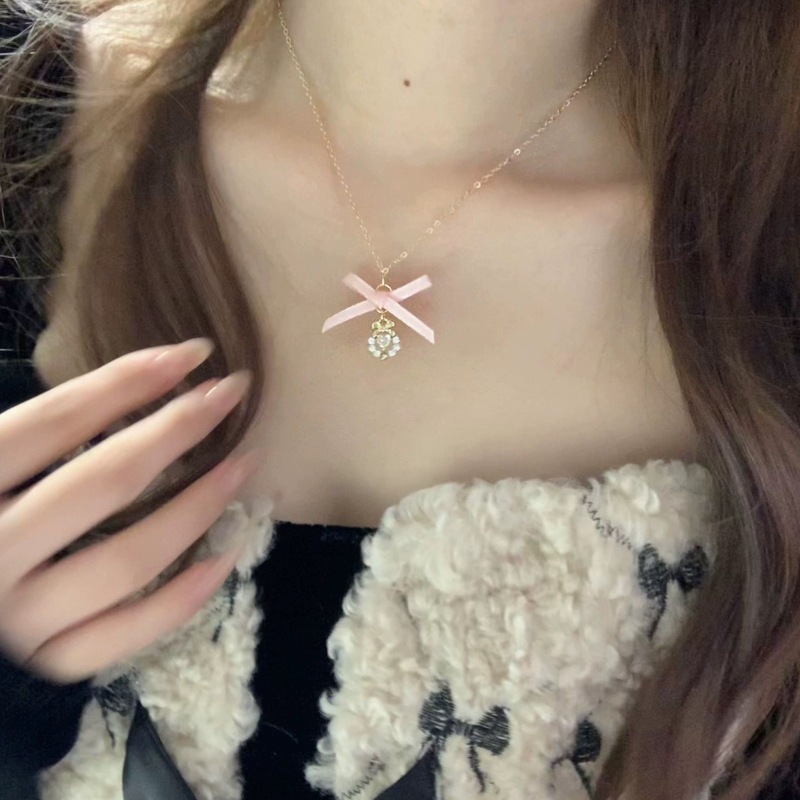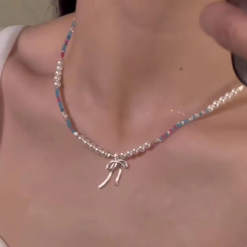 愛の蝶結びの真珠のネックレスの夏の甘い少女の風の大衆の設計は軽くて豪華で高級な積み重ねて鎖の女性をつけます。