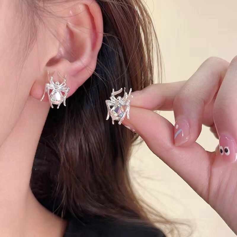 ダイヤモンドのクモのピアスの女性の甘いクールな個性の小さい大衆の高級なギャルの洋風のファッションの銀の針の耳の骨の釘の潮流の耳飾りを入れます。