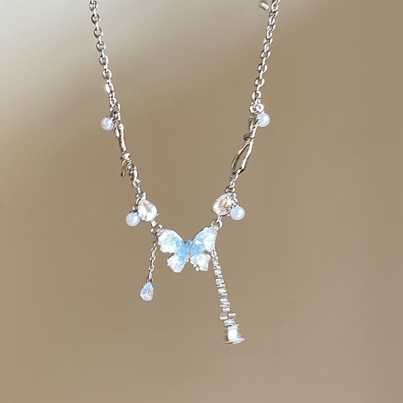 蝶流蘇真珠ネックレス女夏2024年新甘酷ギャルアクセサリー小衆高級感鎖骨鎖