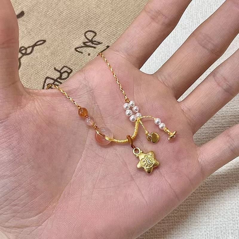 新しい中国風の手編みの金色の福星のペンダントのネックレスのファッション的な復古の真珠の平安は骨の鎖の女性の首の鎖を掛けます。