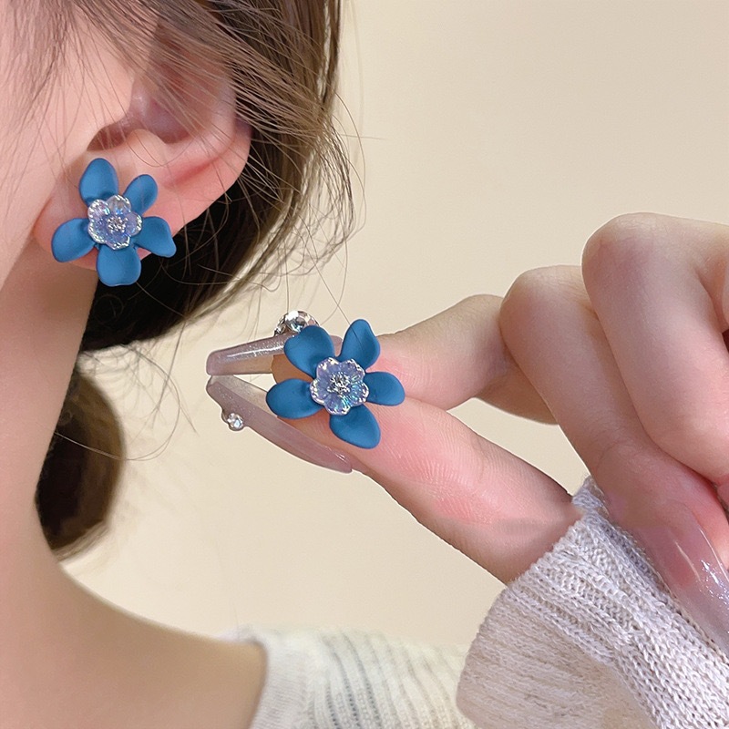 青い花のイヤリングの女性2024の新型の爆発金の高級感のピアスのかわいい甘い気質の小さい大衆の独特な耳飾り