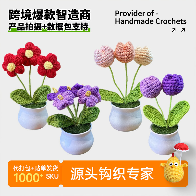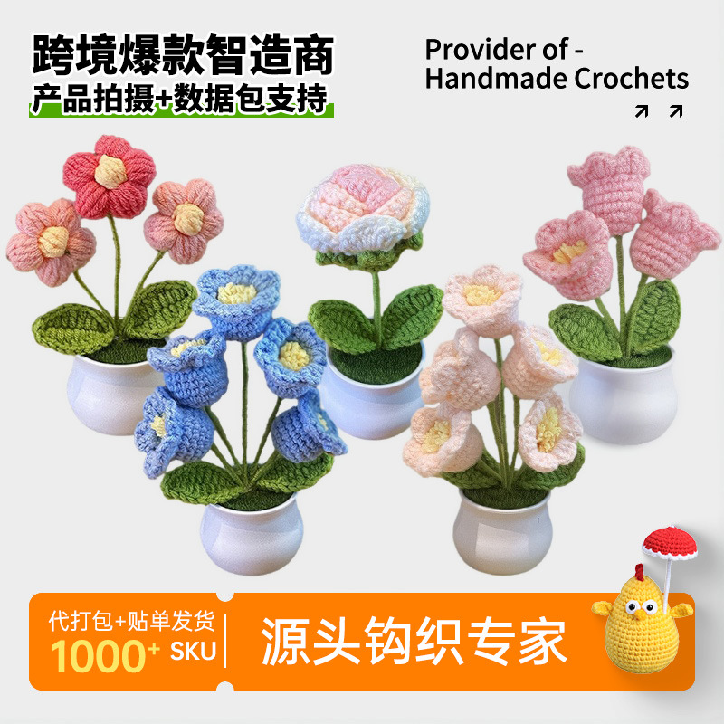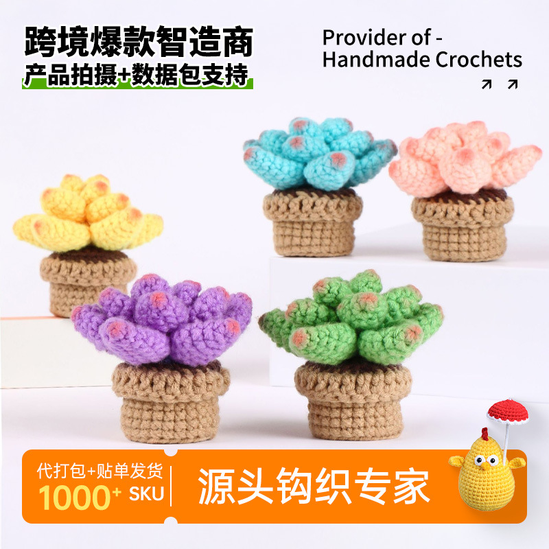 ハンドフックかわいい手作りDIY多肉盆栽完成品置物毛糸かぎ針編み花