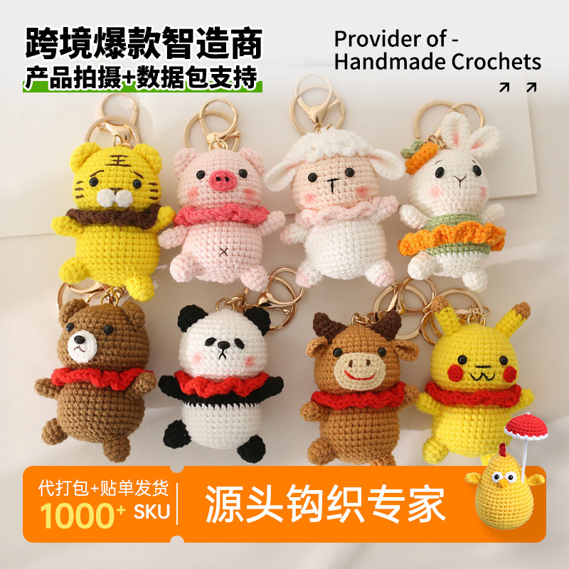 上质手作り编み人形ストラップチャーム完成品毛糸かぎ织り小动物キーチェーン