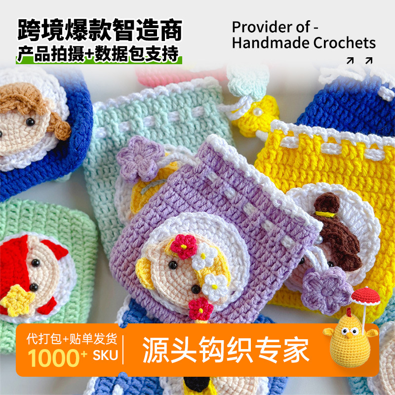 DIY漫画イヤホンバッグins風手作り毛糸鉤織束口バッグ完成漫画小銭入れが国境を越えて人気がある
