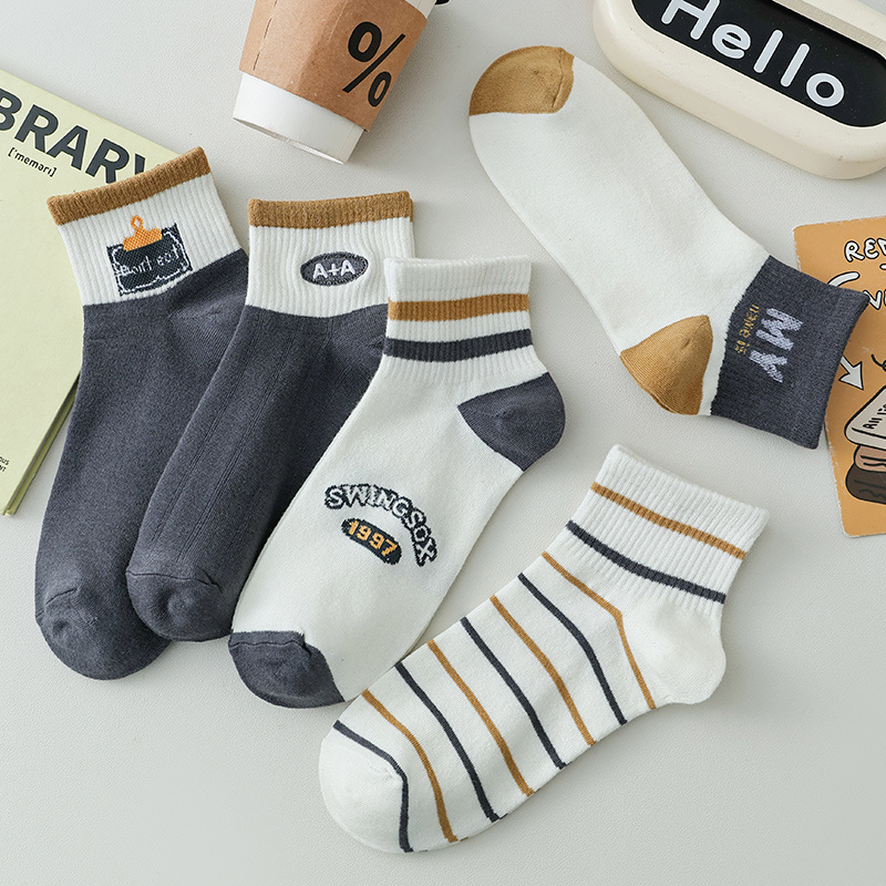 2024春夏の船の靴下のストライプの英語の刺繍のアルファベットの街頭のファッションの靴下の韓国版の諸及び靴下のソックスの工場は国境を越えます。