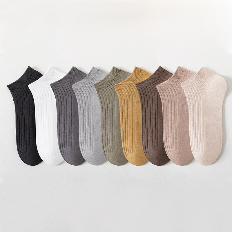 クロスボーダー靴下レディース夏ショートブーツ縦条防臭ソックス純色レディース春秋綿通気性ミドルソックス
