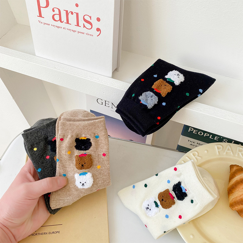 クロスボーダー三匹の熊の植毛カラーポイントの中筒靴下が可愛いです。
