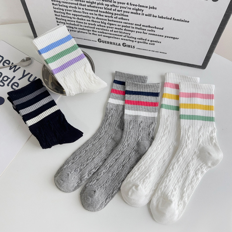 三条の平行棒の靴下の女性の春秋の中筒のins潮網の赤外線はストライプの運動の綿の学生を着てカップルの金を配合します。