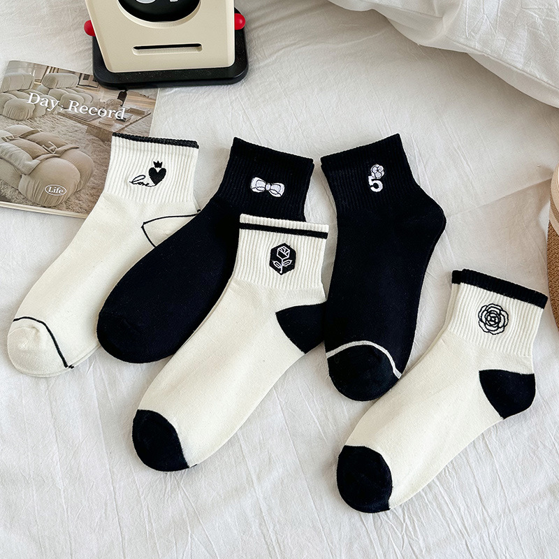 白黒の靴下の女性の綿の潮のソックスの綿の春秋のタイプの刺繍の小さい香の風のネットの赤い夏の薄い低組の中でソックス