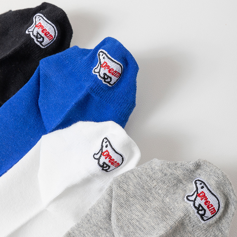 刺繍のアルファベットの後に春夏の男性の靴下の日本の綿の靴下の男性の船の靴下の通気性の立体の小さい耳の運動の靴下