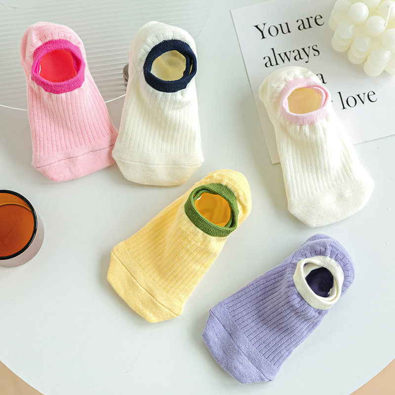 夏のマカロン色の浅い口の低い靴下を引き出します。