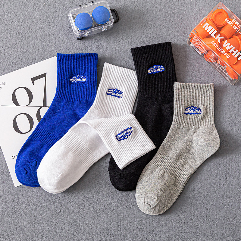 靴下男春秋新作カップル百合学院風アルファベットスポーツ靴下刺繍雪山紋女短筒