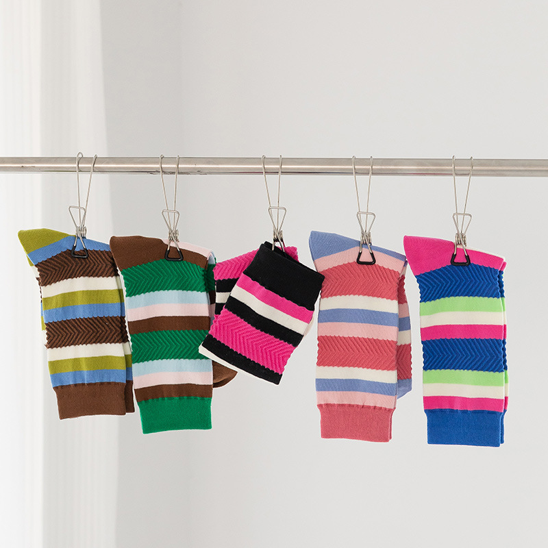 秋冬の新しい靴下の女性の潮流の欧韓insは反織の工芸の虹の靴下のストライプが色の小さい大衆のストッキングにぶつかります。