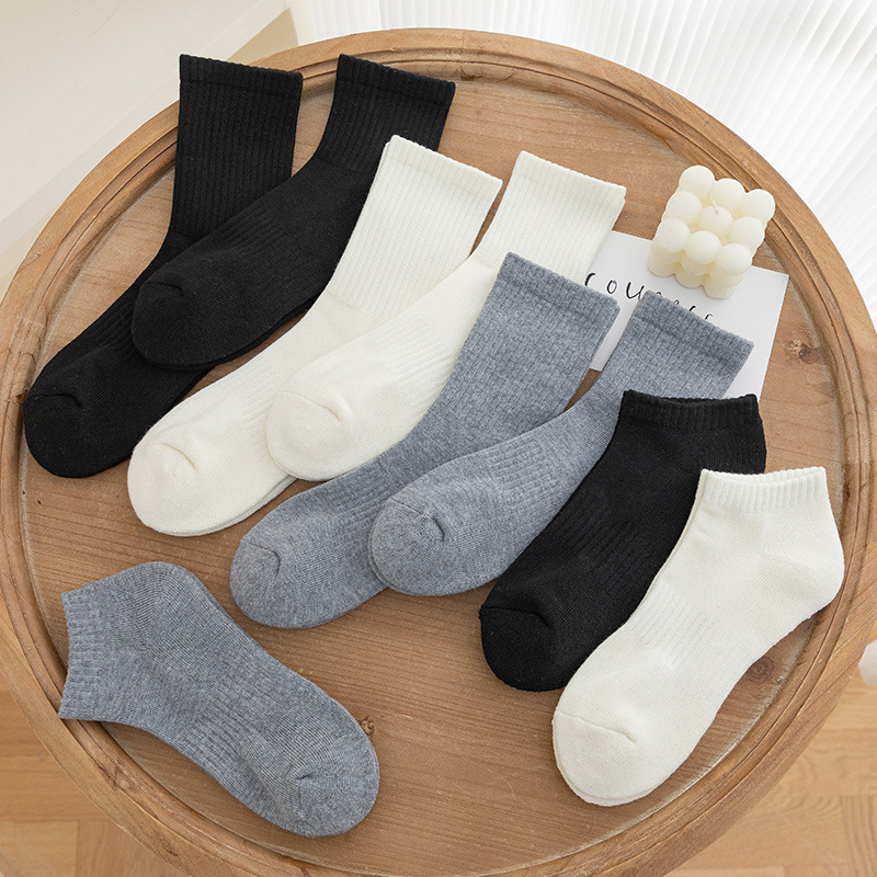 タオルの底の靴下の女性の厚い女性の中筒の靴下の秋冬の男性の靴下の純色の靴下の黒色の毛の靴下の中筒の靴下の船