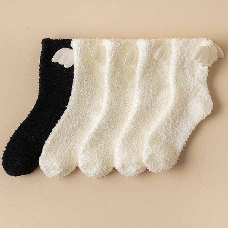 翼の天使のサンゴの絨毯の靴下の女性の猛男の秋冬のベルベットの厚い保温の床板の靴下のカップルのタイプの睡眠の靴下