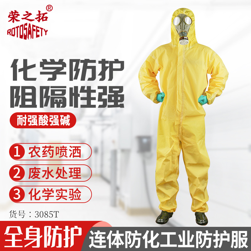 酸アルカリ防化服実験室石油化学工業耐溶剤腐食全身フード付き軽量防護服