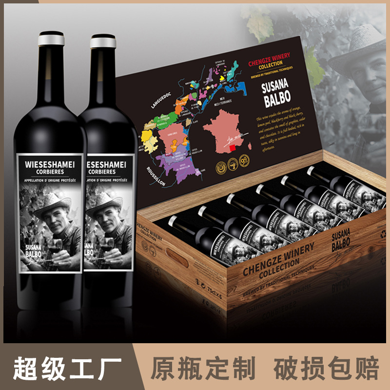 現物招商卸売りフランス輸入ワイン彫刻花瓶乾紅ワイン代発包郵便oemブランドカスタマイズ