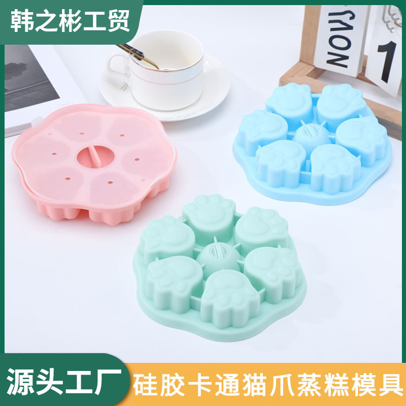 シリカゲルの氷格の補助食品の箱の布丁の型はシリカゲルの米餅の鋳型の漫画の動物の猫の爪の形の蒸し餅の鋳型を卸売りします。
