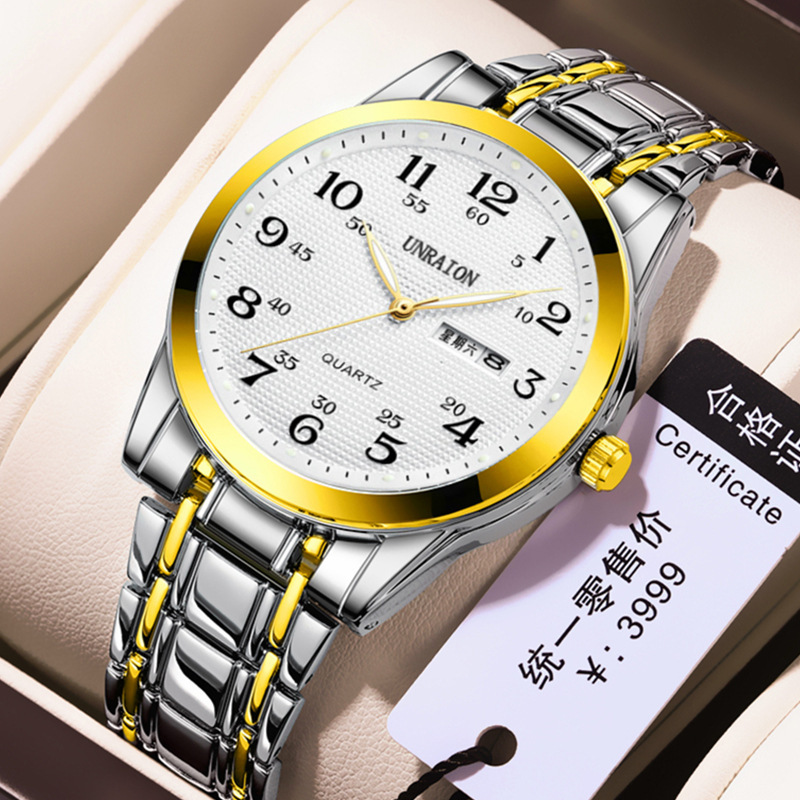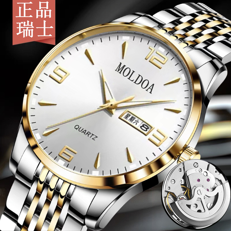 全自動ムーブメント腕時計男性石英非機械学生韓国版潮双カレンダー夜光防水2023新型