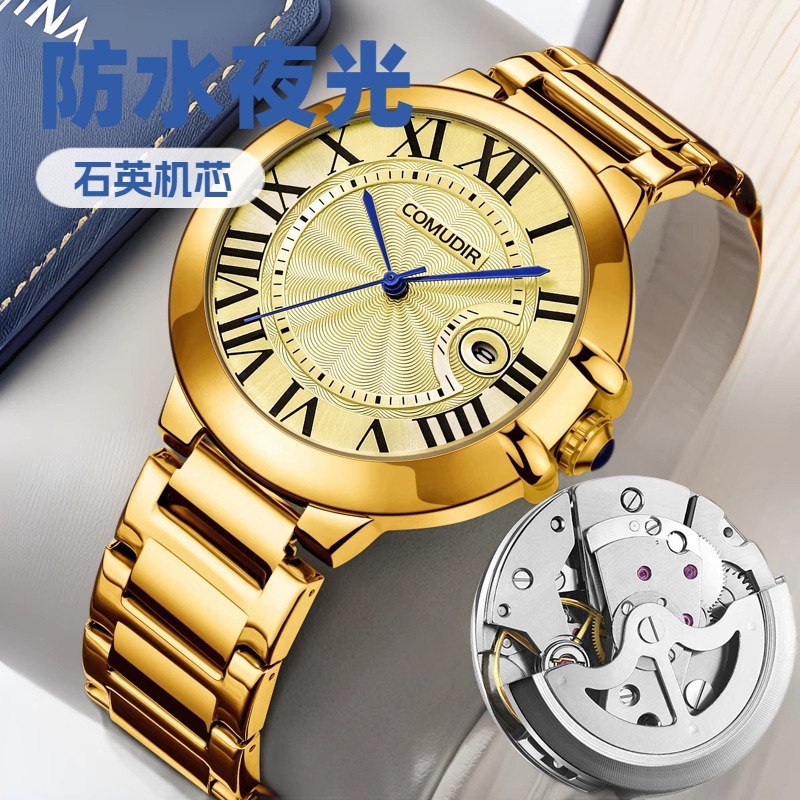外国貿易男性腕時計男性防水ダブルカレンダー夜光潮石英時計中高齢者ビジネス震え音代理
