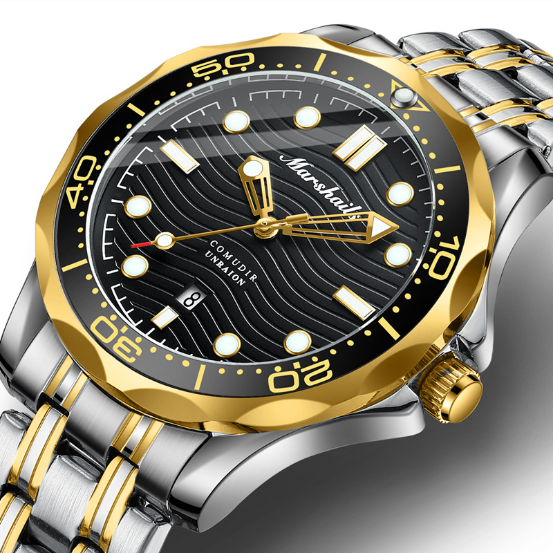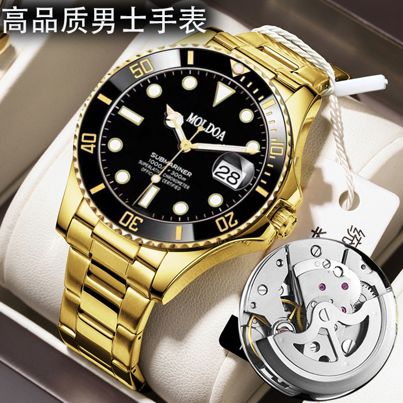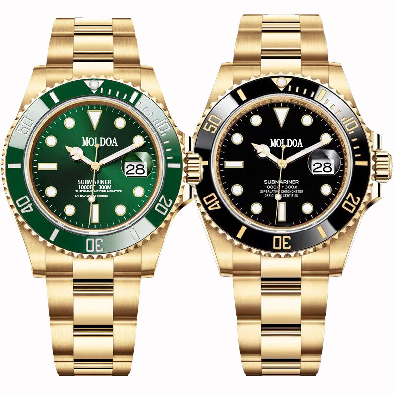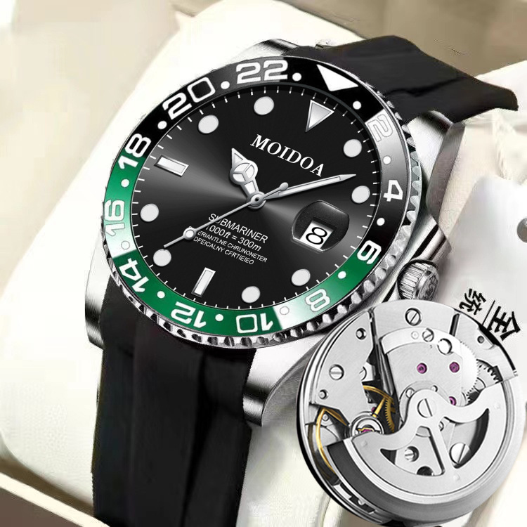 ビジネス水鬼男性腕時計は全自動機械黒緑色文字板夜光防水石英腕時計を模倣している